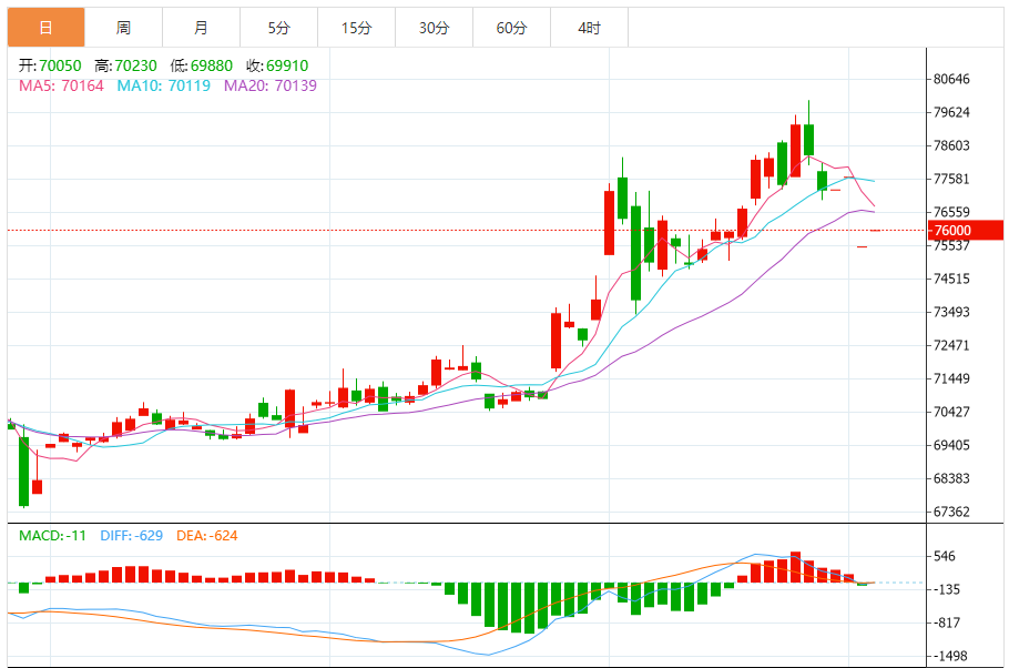 黄金 行情表现:截至21时50分,伦敦金现报4015.81美元/盎司,涨幅1.07%;纽约金报4020.2美元/盎司,涨幅0.68%;上海黄金期货(沪金)报922.22元/克,涨幅0.82%;上海黄金现货(黄金T+D)报919.17元/克,涨幅0.72%。 走势分析:从技术层面来看,日线图上黄金虽收中阳线,但仍在5、10日线之下,技术上保留看