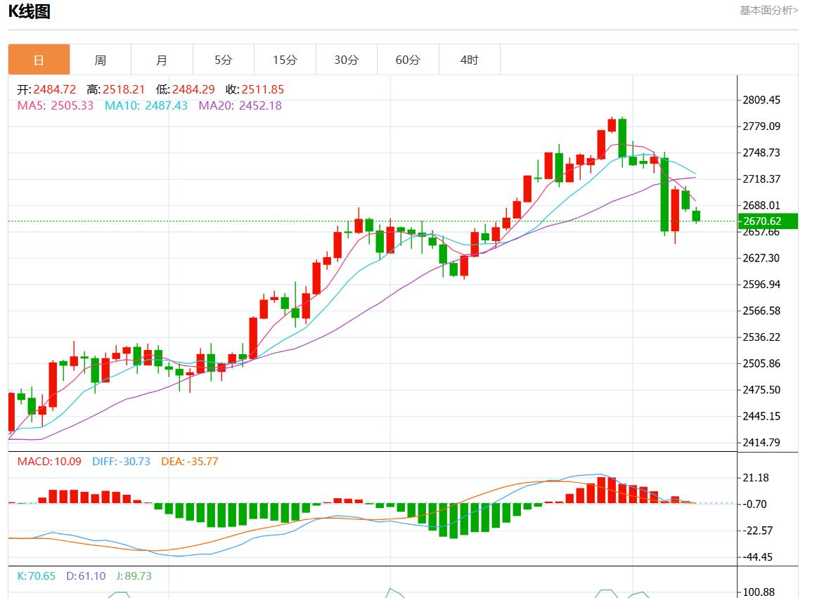 受特朗普关税和企业减税可能促通胀的希望提振,美债收益率上升,美元上涨,降低了黄金对持有其他货币的投资者的吸引力,黄金多头承压,昨日金价再创新低一度跌穿2600美金关口,最终收盘2590美金附近企稳。美元指数升至六个多月高点,增加了其他货币持有者购买黄金的成本;与此同时,美国国债收益率也走高。数据显示,全