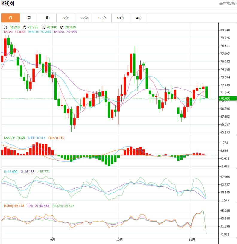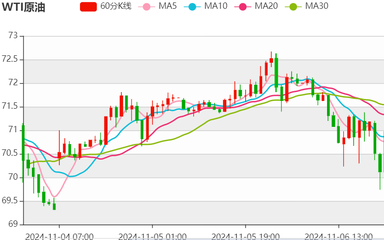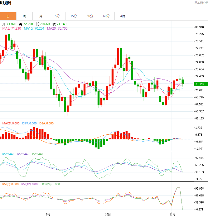 随着IA、OC纷纷下调今年全球石油需求预期,充足的供应或抵消中东地缘政治冲突引起的石油产量担忧,风险溢价再度走弱,国际原油价格延续弱势空头单边下行走势。美国大选结果即将出炉,以及接下来还将迎来美联储利率决议,市场普遍预期将进一步降息25个基点,日内有多个重要财经数据将公布,地缘政治风险仍存,针对当前多