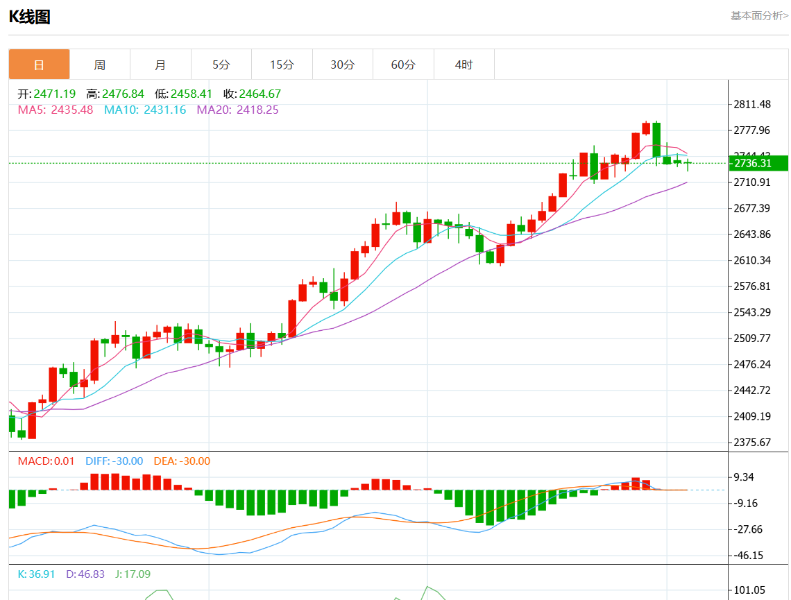 黄金、白银、原油、贵金属11月4日收盘情况: 周一,金价微涨,因美国选举的不确定性引发市场对可能出现争议结果和政治紧张局势的预期,投资者还密切关注本周晚些时候的美联储政策会议。 现货黄金上涨0.02%,报2736.38美元/盎司,上一周四曾创下2790.15美元/盎司的历史新高。 道明证券(TDcuriti)大宗商品策略主管Bartl