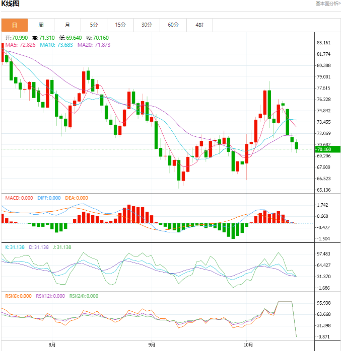 随着IA、OC纷纷下调今年全球石油需求预期,充足的供应或抵消中东地缘政治冲突引起的石油产量担忧,风险溢价再度走弱,国际原油价格延续弱势空头单边下行走势。 原油盘面分析: 原油H4级别小幅反弹,但依旧在48日多空分界线下方运行。此外,ACD双线和量能柱在零轴下方缩量。根据最新报道,以色列已同意不打击