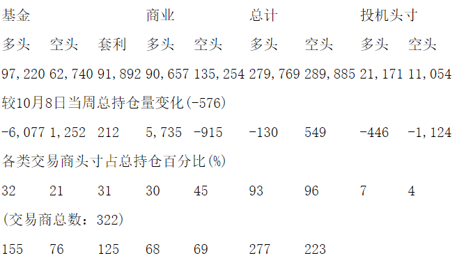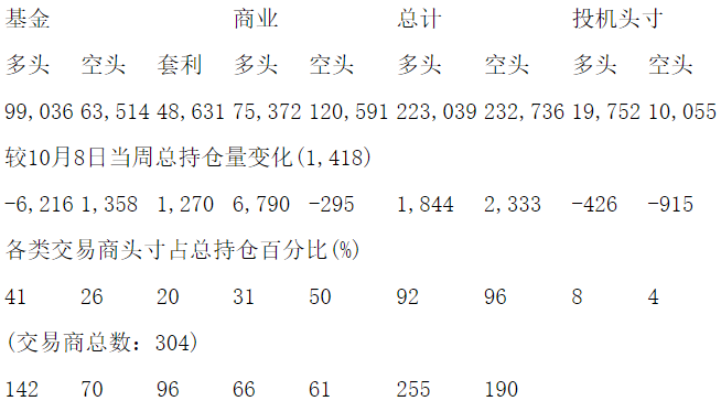 美国商品期货交易委员会(CFTC)最新公布截止10月15日当周COX铜期货和期权分类持仓报告: 合约单位:25000磅总持仓量:300940