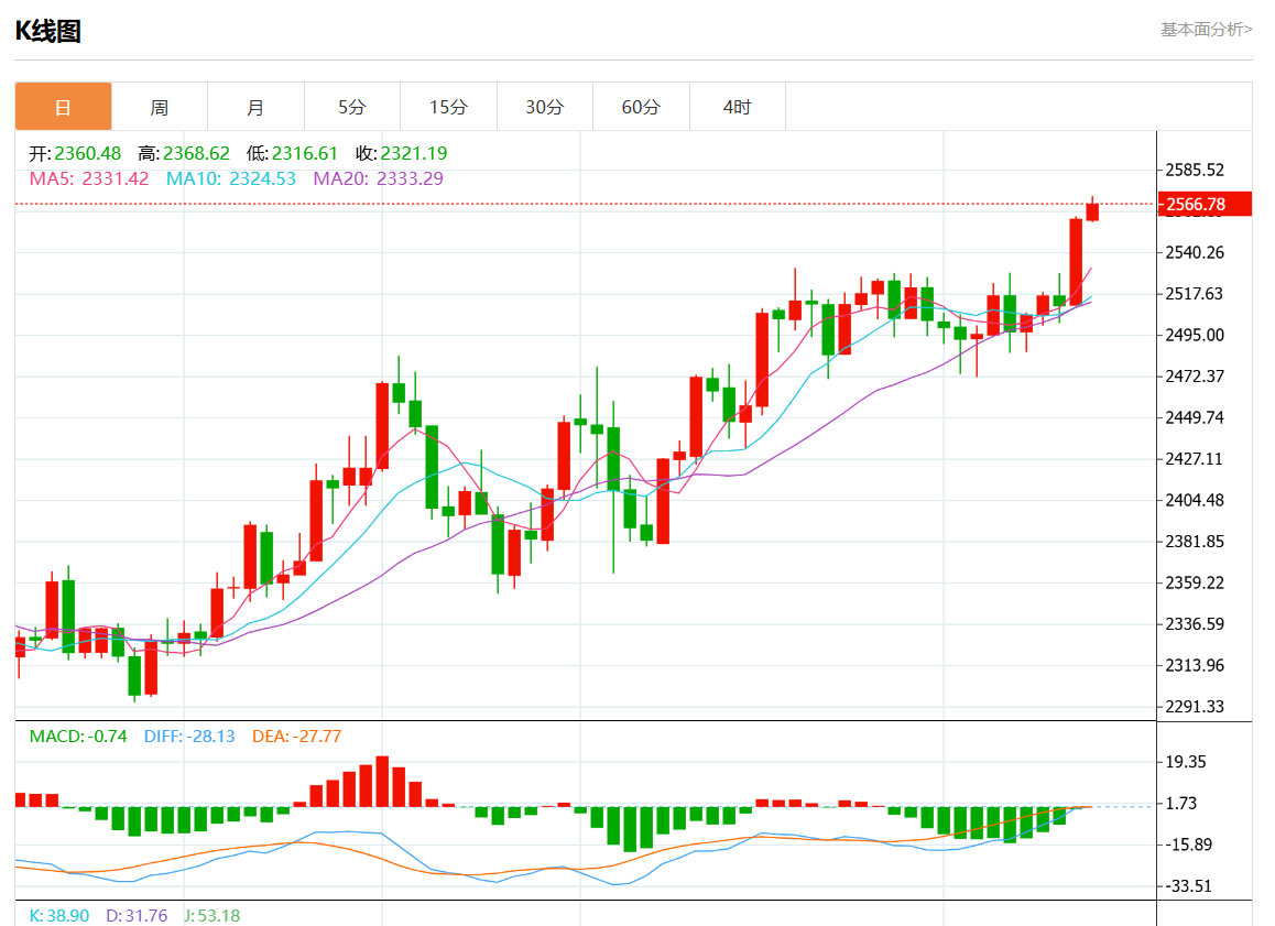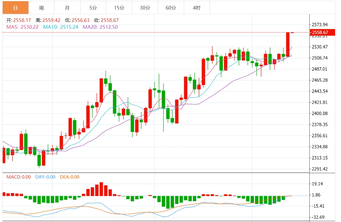 昨日现货黄金大幅上涨,日内一度大涨近50美元,并一度冲上2560美元,再度创历史新高,因美国初请数据显示就业市场降温同时欧洲央行降息也降低持有黄金的机会成本,地缘局势担忧继续给金价提供避险买盘支撑。 美国I、核心I月率分别录得0.2%、0.3%,均高于预期但前值被下修;美国上周初请失业金人数温和升至23万人。CFdWa