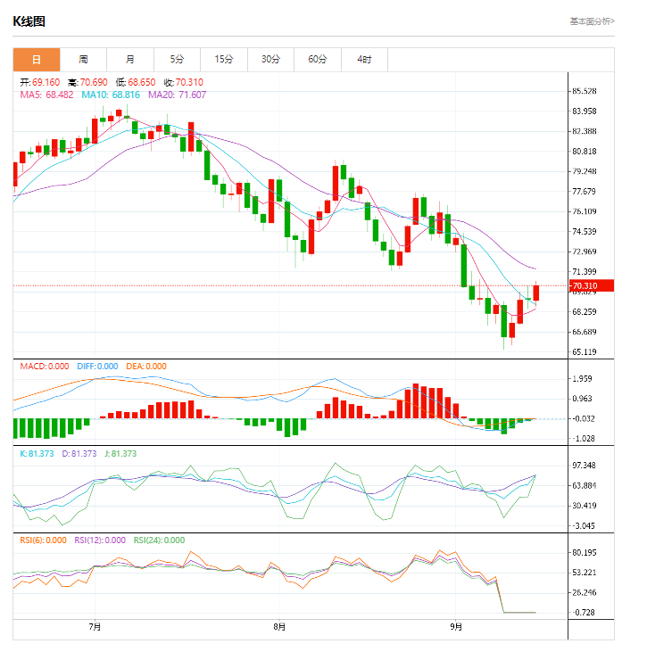9月13日,上海C原油期货主力合约日内收涨2.03%至513.1元/桶,当日最高价报518.8元,最低价报507.1元;夜盘时段逢中秋假期,国内原油期货休市。 原油盘面分析: 飓风弗朗辛导致美国墨西哥湾近42%的原油生产和53%的天然气生产暂时中断,相当于每日73万桶原油和9.92亿立方英尺的天然气产量。尽管如此,GTC泽汇资