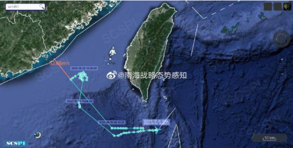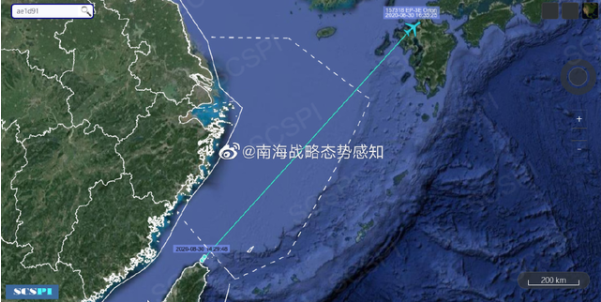 据“南海战略态势感知”计划平台8月30日发布的消息美国海军EP-3E侦察机飞行轨迹