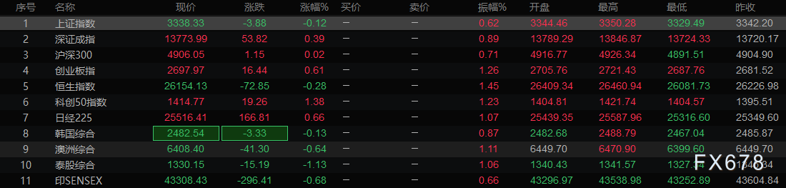 亚洲股市行情一览