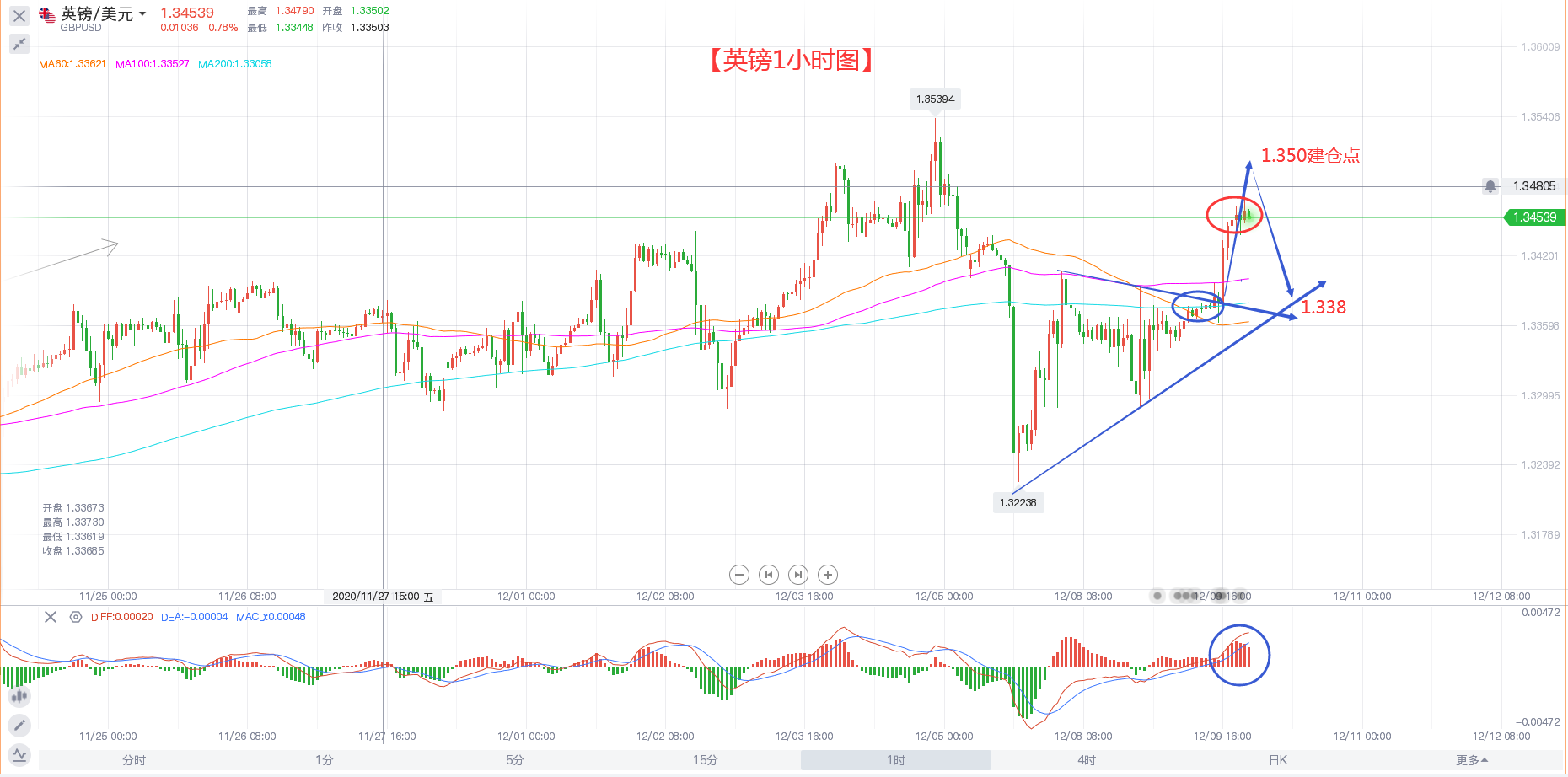 英镑1小时图:
