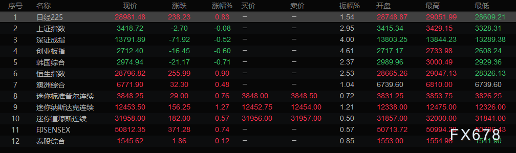外汇方面,美元指数周二窄幅震荡,持于三个半月高位附近,美元兑日元连续第五日上涨,创九个月以来高位,目前交投于109.2附近。澳元或结束此前四连跌,亚盘涨近0.2%。欧系货币小幅上涨。股市方面,上证指数开盘一度跌近3%,不过午后一度转涨,日经225指数震荡上涨约0.8%。