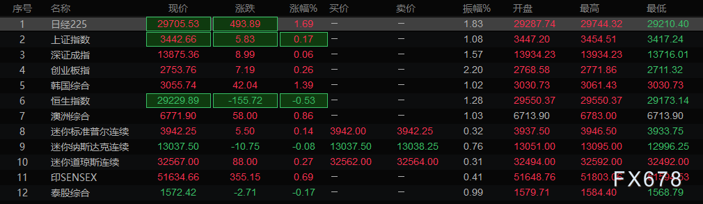 亚洲时段行情一览