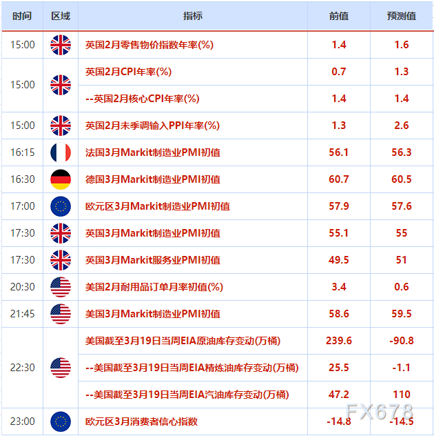 ⑥ 行业消息人士援引美国石油协会(API)的数据称,截至3月19日当周,原油库存跳增290万桶,分析师预估为减少约30万桶。这也加大了油市的压力。