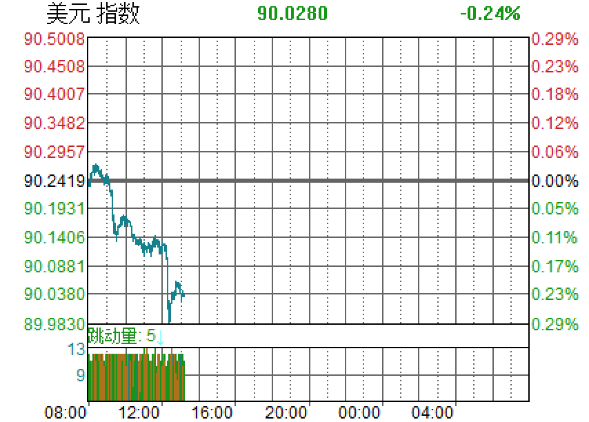 12月17日亚洲市场时段,美元指数继续下跌,盘中跌破90美元关口,截止发稿,美元指数下跌0.24%至90.02。
