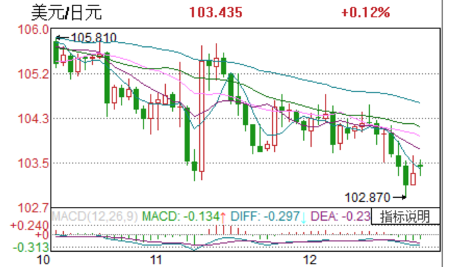 12月21日亚盘,美元兑日元上涨0.12%至103.43。