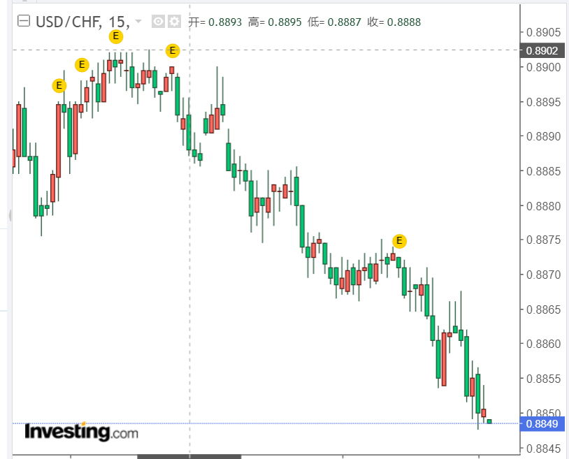 美元兑瑞郎下跌目标首先测试0.8820,超过该水平将扩大看跌趋势,达到0.8730。