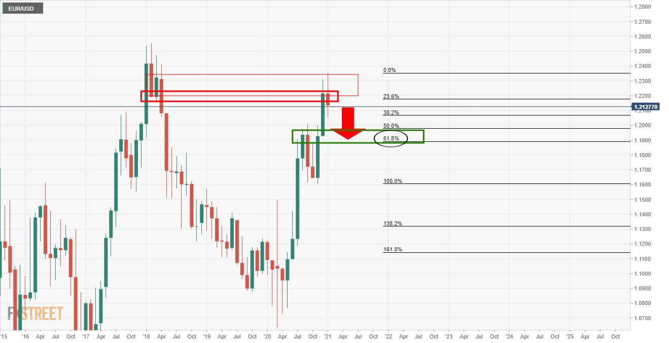 以下是对欧元走势和市场结构的自上而下分析,得出了一个看跌倾向,一直回到周支撑位1.19区域。