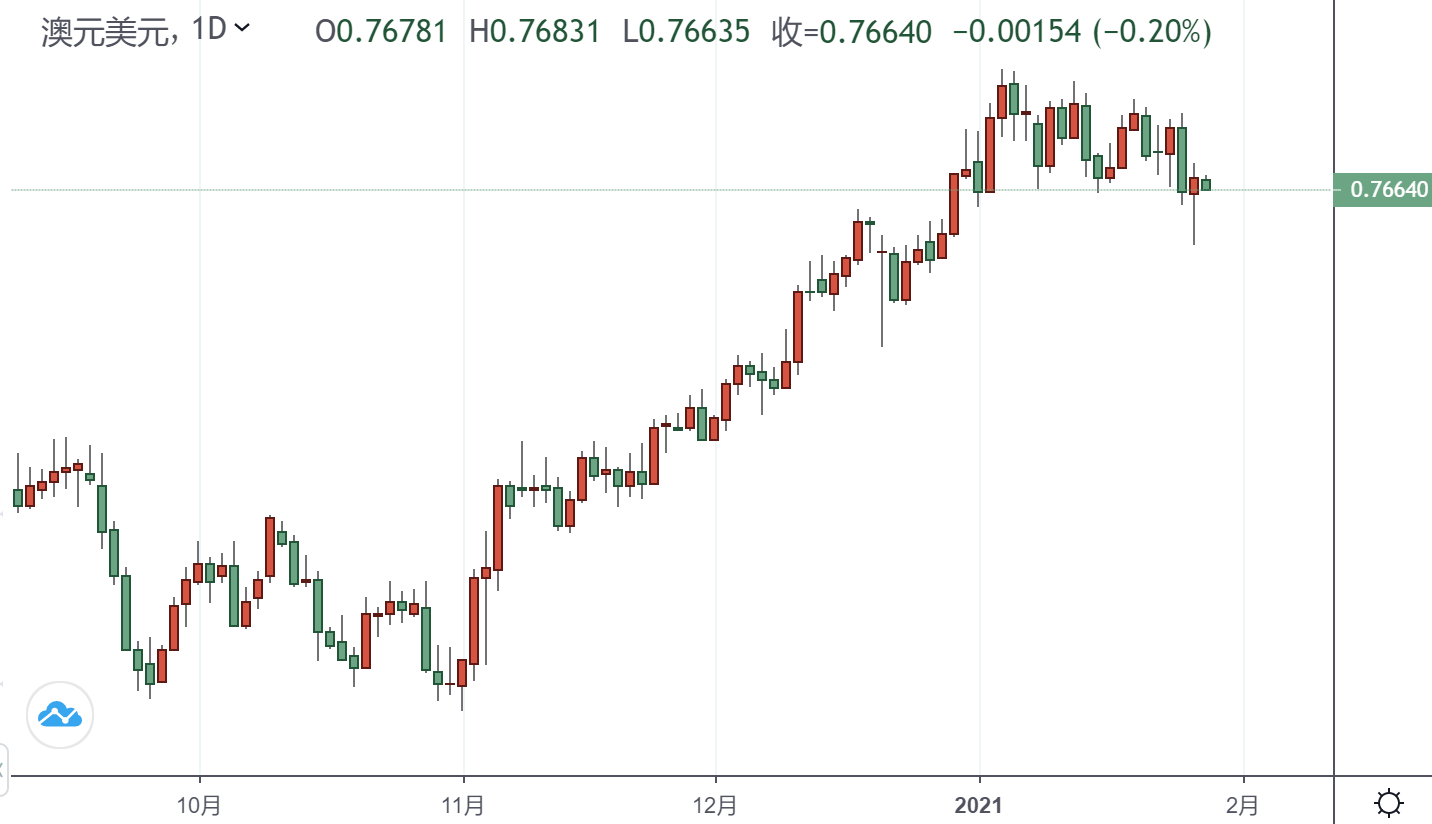 澳储行维持利率不变,且推出进一步购债计划,澳元/美元跌破0.7650,下跌25个基点。
