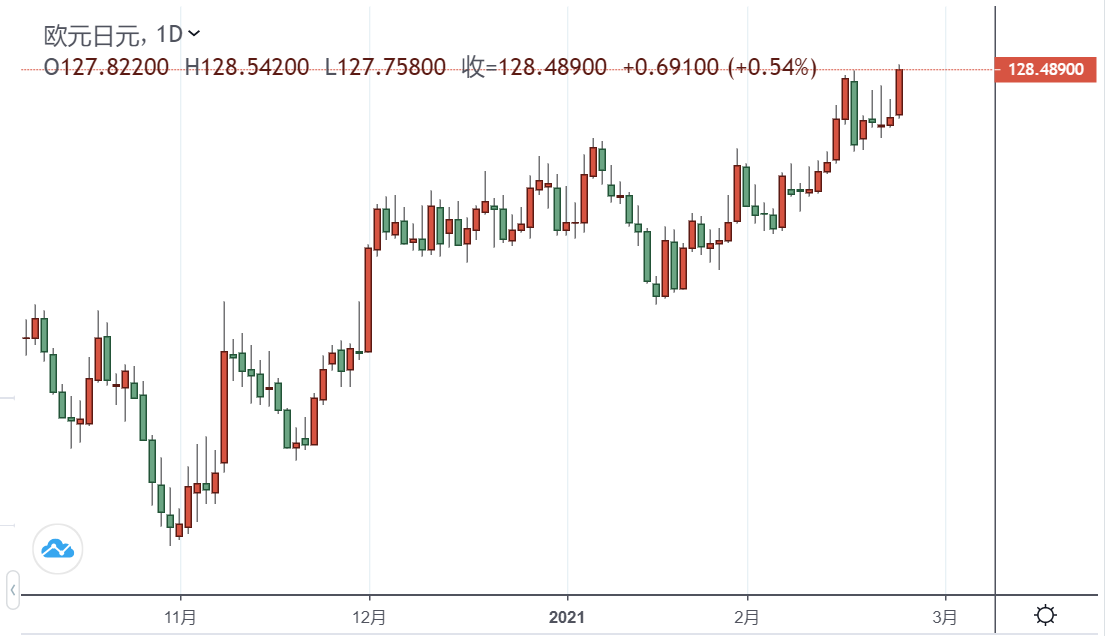 欧元/日元昨天触及128.27,触及图表上的阻力线,这是确认预期负面情况的主要因素,因为持续的波动料可以等待记录负面目标,可能从127.45开始,然后是126.75。