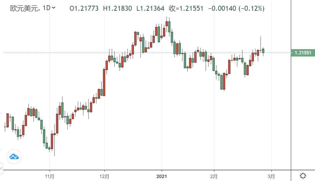 周五亚盘,欧元/美元跌至1.2137后,欧元兑美元目前持平于1.2160附近。10年期美债收益率自周四触及的12个月高点1.55%回落至1.50%,引发汇价反弹。