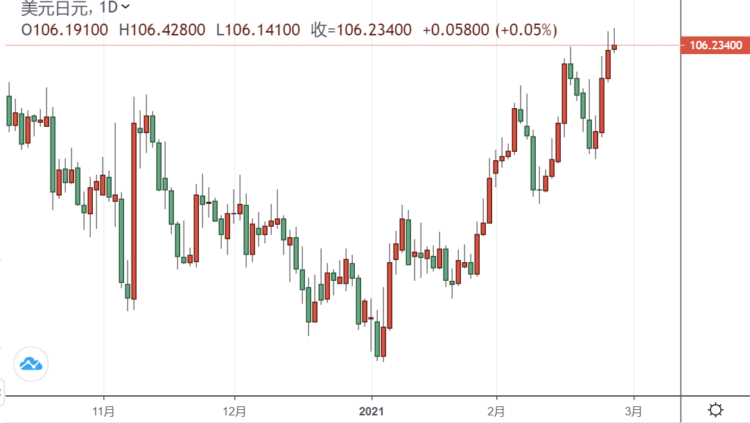 在美国国债收益率突然飙升之际,美元重新受到需求。美国债券市场一直对美国大规模财政支出计划的进展和全球冠状病毒疫苗接种令人印象深刻的速度反应强烈。