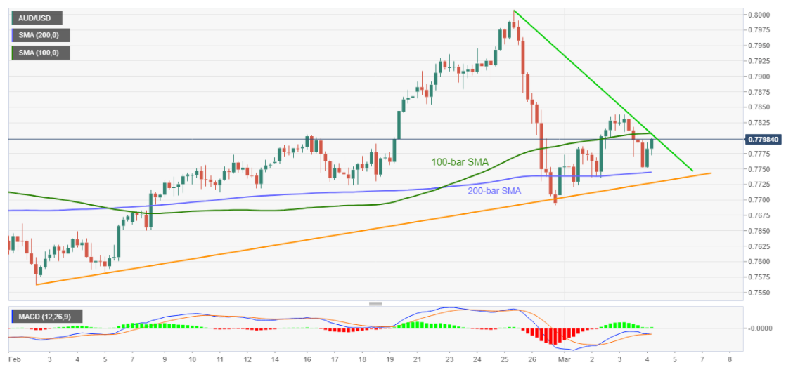 技术面显示,汇价自200SMA反弹,因为MACD看涨。多头目前关注0.7810阻力,包括100SMA和自2月25日以来的下降趋势线。