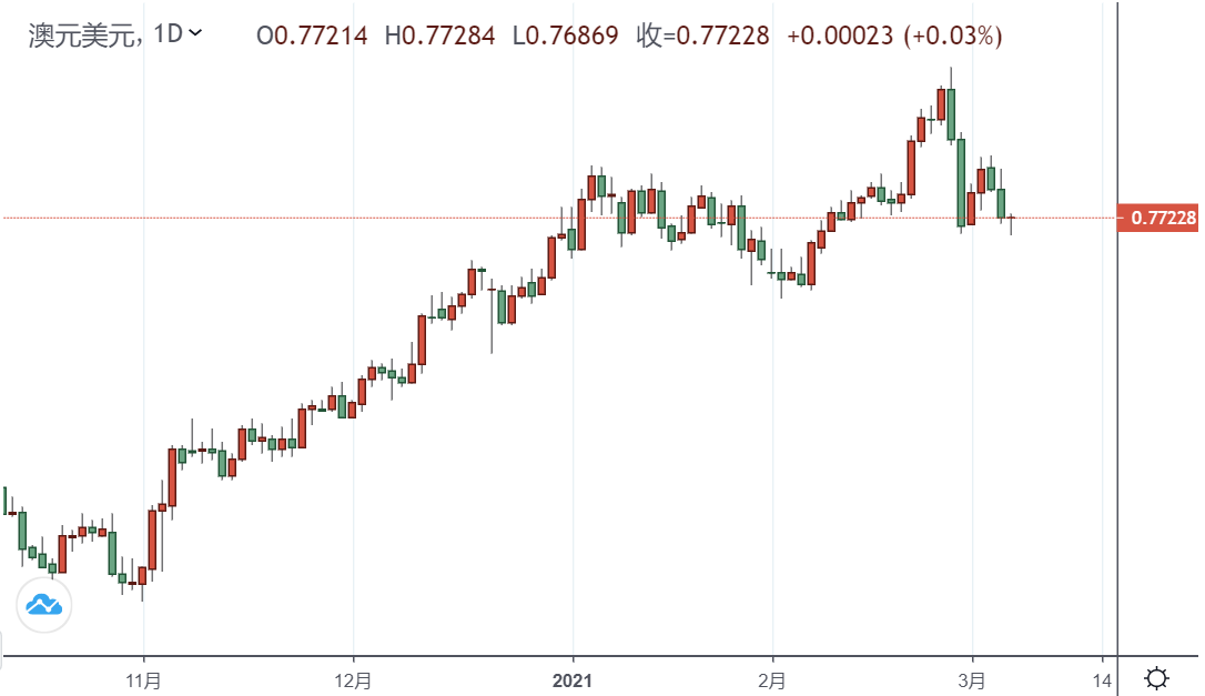 澳元兑美元跌破55日均线0.7718,可能进一步跌向2月低点0.7564。澳元兑美元已开始跌破55日ma均线0.7718,加之上周录得关键反转,表明澳元将进一步下跌。