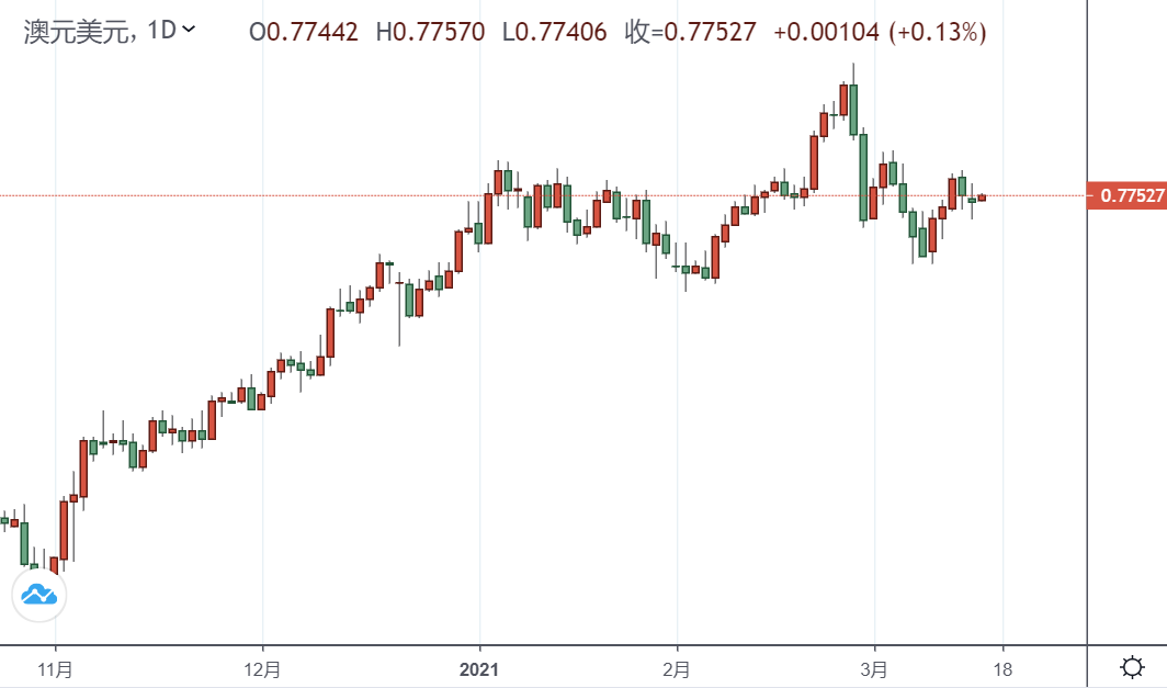 澳储行此前公布的3月会议纪要显示:该央行认为强力的货币政策支持非常必要,并且将继续保持;会议纪要同时显示,央行委员们认为只要劳动力市场仍有大量缺口,通胀率就不可能持续上升,并且预计最早要到2024年才会达到失业率、通胀率目标。这意味着澳储行的宽松政策可能将比美联储持续更久;由于澳储行并不像市场近期表现的一样担心通胀风险,并且政策立场和指引也没有丝毫松动的迹象,澳元兑美元因而无力反弹;
