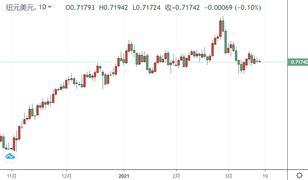 周三欧盘中,纽元/美元小幅下跌0.05%至0.7173;随着投资者为明天的美联储利率决议做好准备,美国股指出现回调;澳洲西太平洋银行领先指标于日内公布,而新西兰GDP则将于东八区时间明天5点45公布;纽元/美元将面临阻力汇集水平的测试,随后可能重新回归长期看涨趋势。