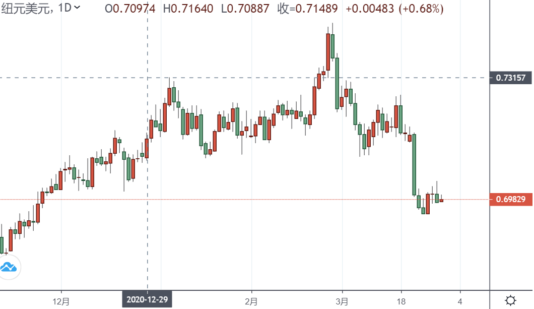 周三亚市,继中国经济数据公布后,纽元/美元刷新高位0.6996。