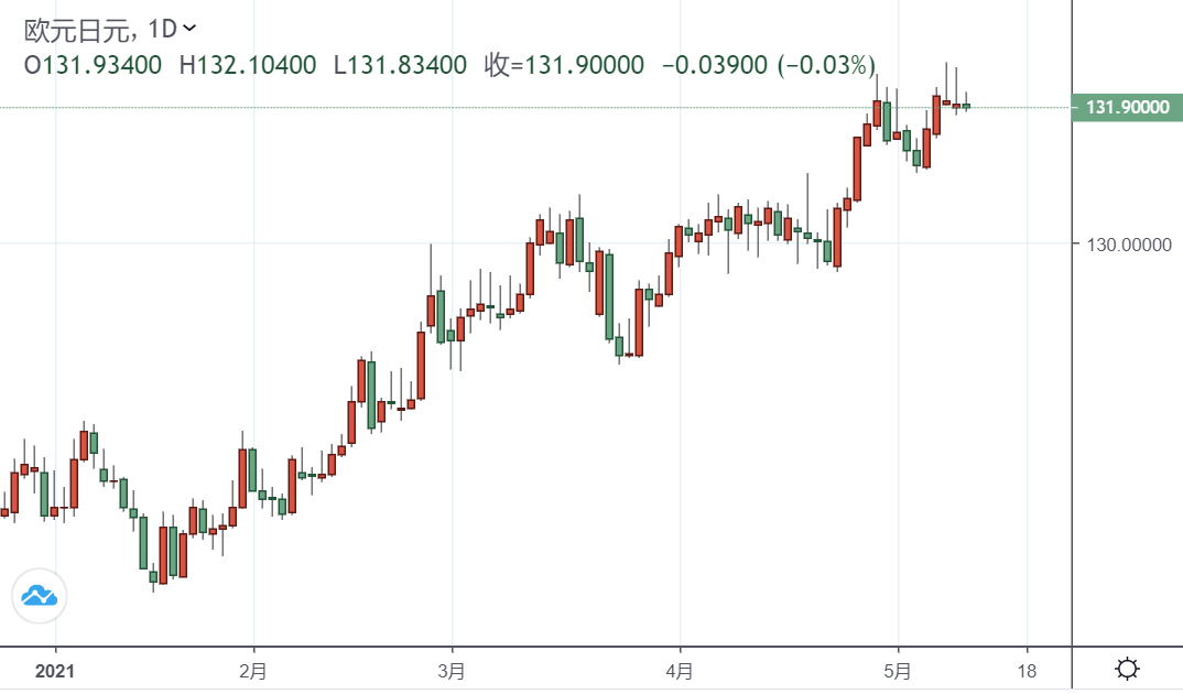 目前,4月底至5月的价格区间的23.6%斐波回撤位正支撑着价格走势。如果欧元/日元后市突破该斐波档位,则正在上行的9日指数移动平均线可能会为价格提供支撑。反之,若价格反弹走高则将使最近创下的多年来高点受到关注。涨破该高点(132.52)则涨幅有望进一步扩大。