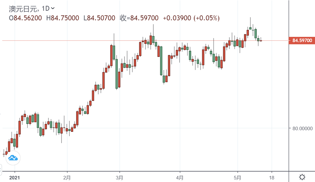 或者,若澳元/日元出现反转,则将重测前日高点84.90,然后是周三高点85.26。汇价将延续最初的上涨势头,触及85.50水平阻力位。