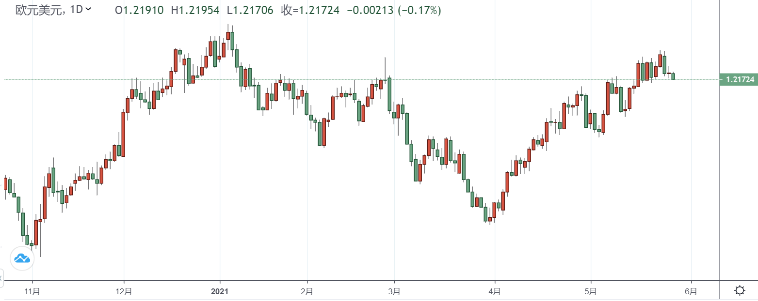 欧元兑美元在本周早些时候触及了数月以来的高点1.2266一线,随后开始下跌。然而,5月近剩下最后几个交易日,欧元/美元月线收盘涨幅有望超过1%。