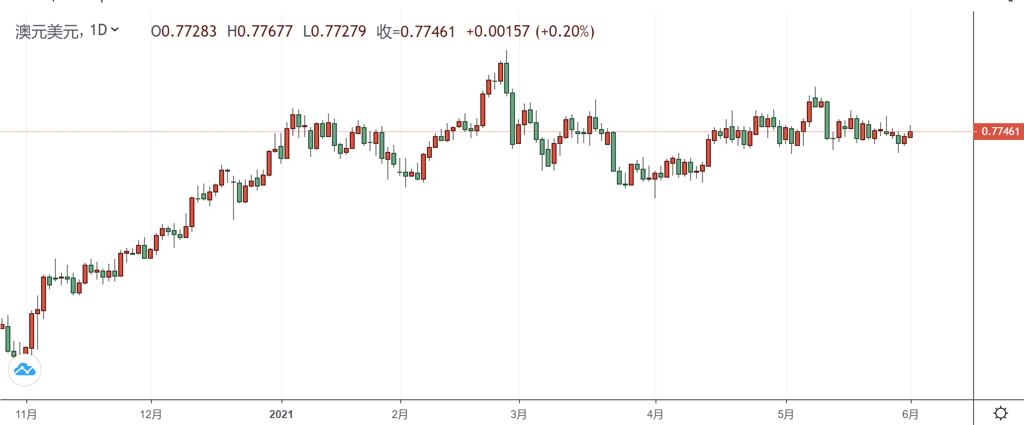 澳洲联储在会后声明中指出,澳大利亚4月份失业率下滑至5.5%;降低失业率的进展较预期更快;尽管通胀和工资增长有望回升,但或许只是渐进且温和的;在部分经济领域出现了劳动力短缺现象。一个重要的不确定因素为可能爆发的新冠疫情。