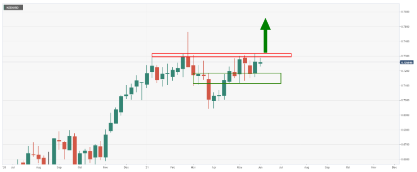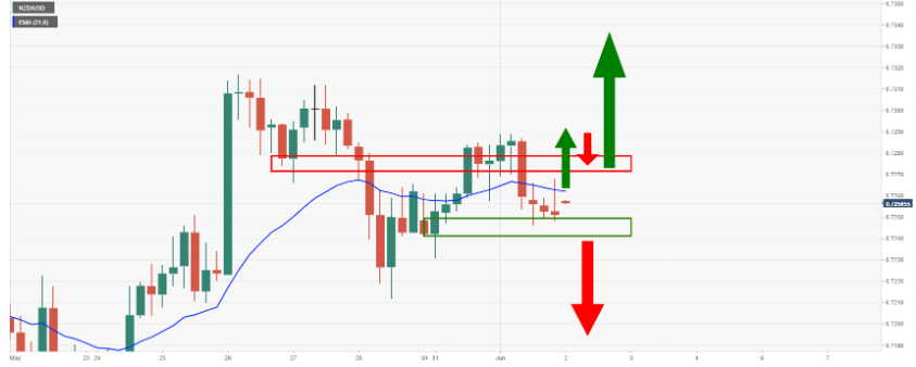 纽元兑美元正处于突破4小时阻力位的边缘,这是每日看涨冲动和每周新高的基础。