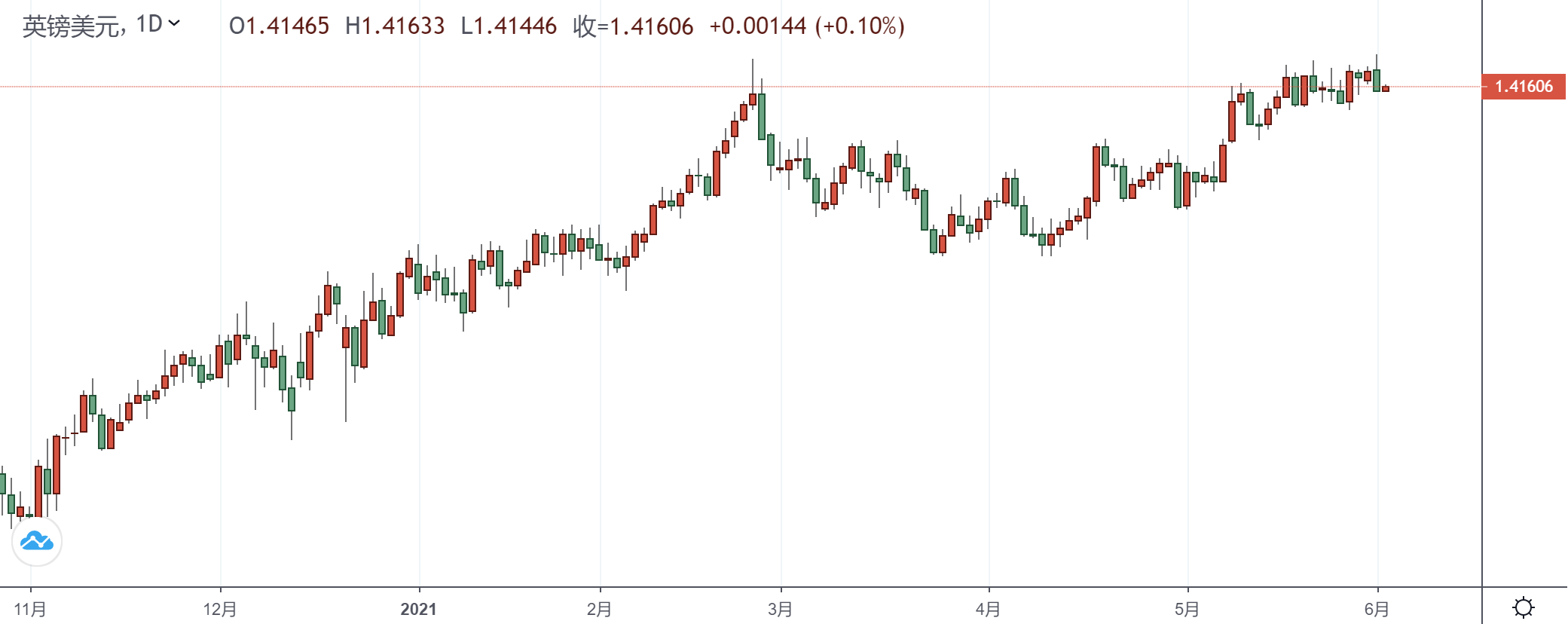 英国方面5月Markit制造业PMI终值意外录得下滑,令英镑在创下三年多新高后反倒大幅回落。另一方面,最新数据显示,英国服务出口在英国脱欧后下降了1100亿英镑。此外,随着来自印度的变种开始流行,英国的新冠病例和住院人数不断上升。