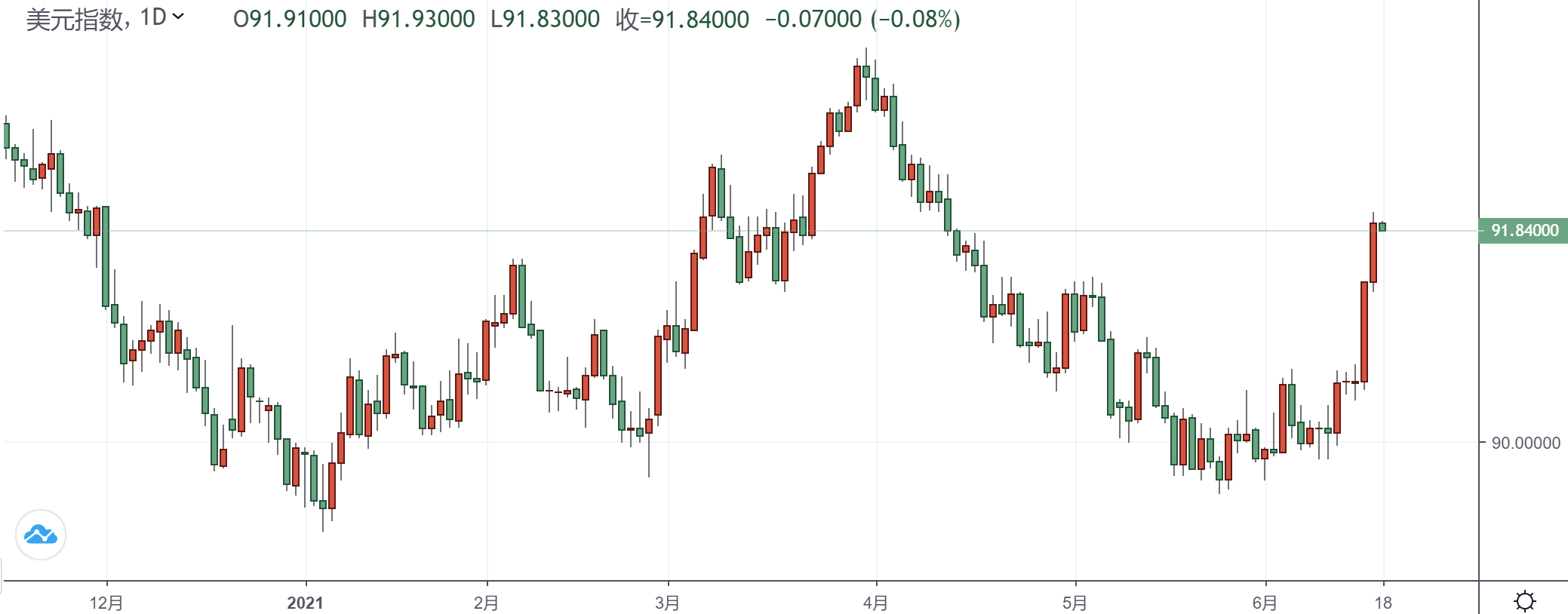 美元凶狠反弹升穿92关口