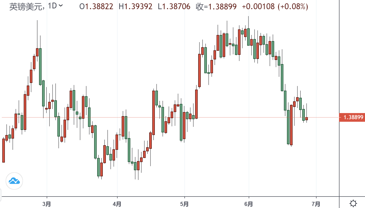 周一欧盘,英镑兑美元从日内波动高点回落超过50个基点,最后仅小幅上涨,略低于1.3900大关。