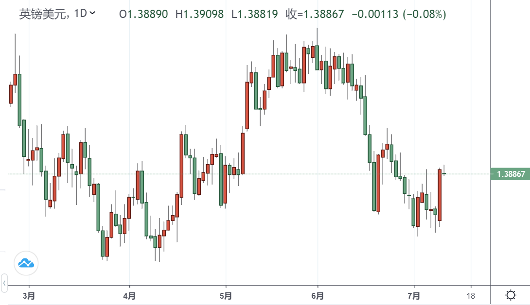 但值得注意的是,英镑兑美元在升破1.39关口之后,进一步阻力水平将上看100日均线切入位1.3945,之后在上触1.40关口后,短线反转行情方可彻底得到确认。而市场投资者同时也在瞩目本周开始的股市二季度财报季,以及之后英国能否在7月21日完全全面解封的前景,如果风险情绪重新恶化,那么下破1.3750将意味着更大尺度下行趋势的全面确认与中期反转行情的完成