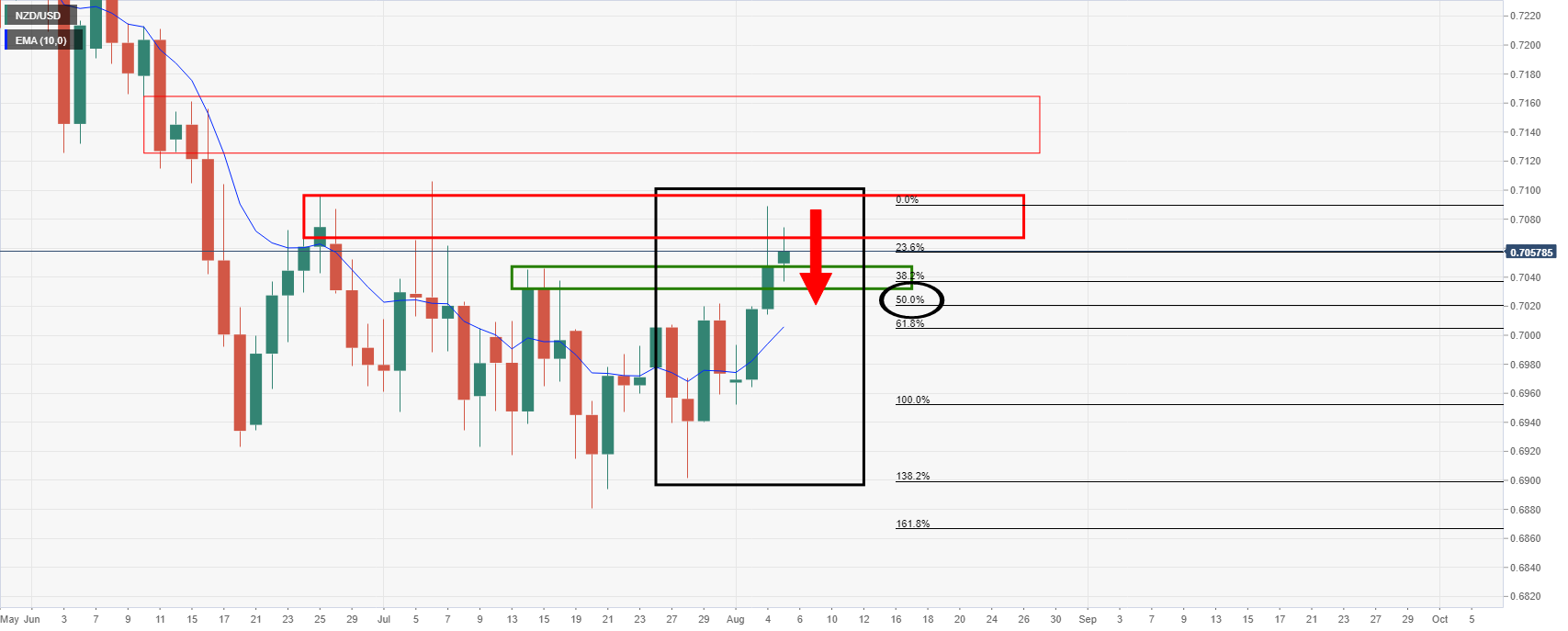 在过度扩张的情况下,比如纽元目前的情况,对38.2%的斐波那契水平进行修正的可能性更大,特别是如果它有一个预期将起到支撑作用的旧阻力位的汇合点。