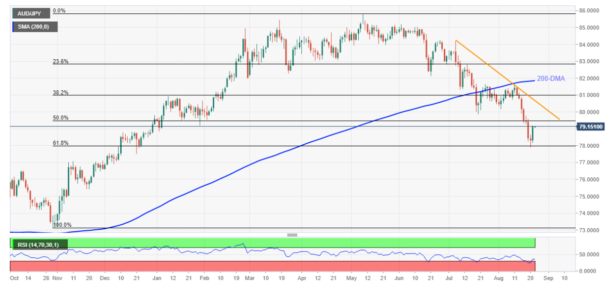 但7月低点79.85,然后是80.00关口,然后是七周阻力80.70附近,将成为多头目标。下行方面,若澳元/日元未突破79.00整数关,将回调至61.8%斐波位78.00。如果空头遇阻78.00,则汇价将测试2020年11月和2020年10月高位,分别处在77.00和76.50附近。