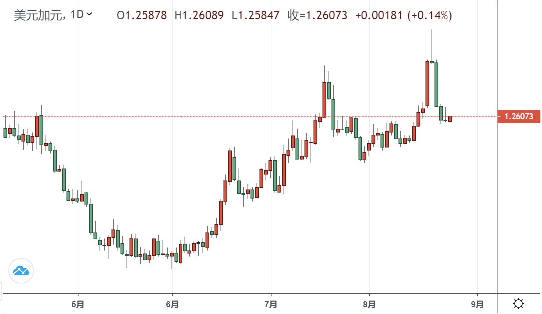 技术日图显示,美元/加元8月20日测试高点1.2949后维持处在整理当中。美元/加元在20日均线1.2585处获得支撑。若美元/加元突破时段高位,则可能进一步上涨,接近前日高位1.2643。