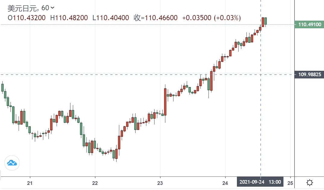 结合之前公布的FOMC声明中提到了在各成员的利率预期中,预测22年开始加息的成员增加到9人,并暗示22年加息的可能性。美国10年期国债收益率大幅上涨,助推了美元汇率整体的回升。