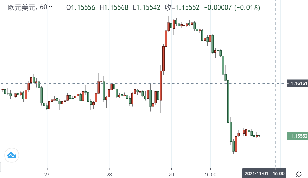 今日欧元/美元汇率走势图分析(2021年11月1日)