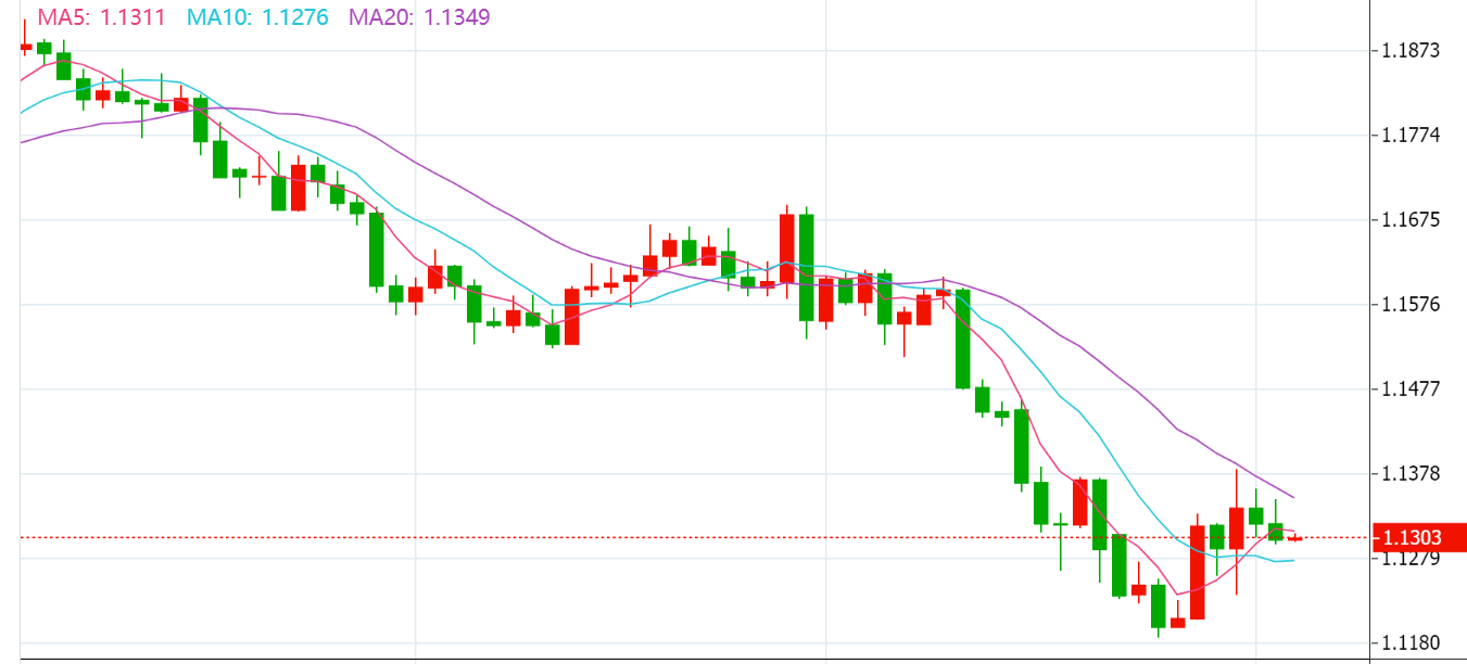 技术上,日图在20日均线接近收平,随机指标倾向回调。4小时图波动有限,在MA100一线有受阻迹象。小时图小幅走低,下破1.1300,若维持在该档下方将有望进一步下行。