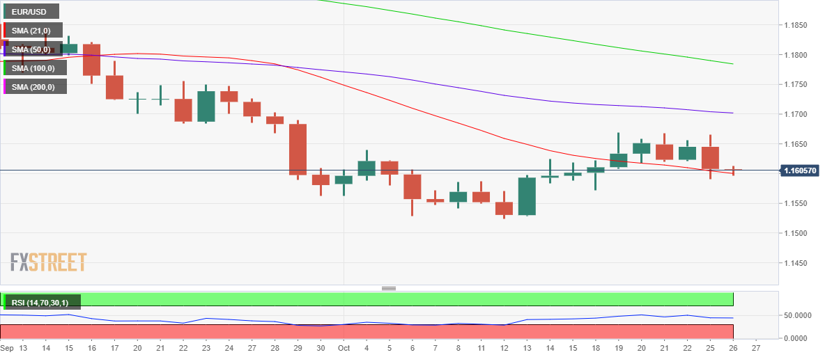 欧元兑美元在1.1600附近保持稳定,在美元全面走强的情况下缺乏任何看涨潜力。 随着美国国债收益率暂停最新的修正回调,美元恢复了周一的反弹势头。 在通胀担忧加剧、美国企业财报强劲、以及美国经济刺激措施取得进展之后,市场情绪喜忧参半,这使得美元的避险吸引力得到了支撑。 该货币对目前正等待周四欧洲央行的货
