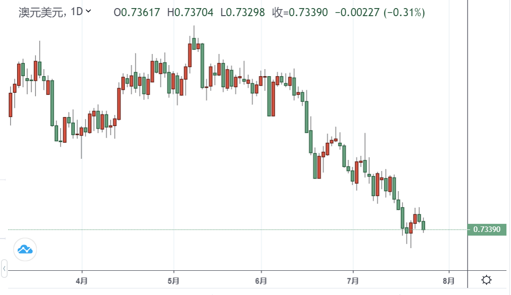 周一,欧洲盘早盘,澳元兑美元交易偏见温和,最近一次徘徊在日交易区间的下端,约0.730中位。 该货币对延续了前一交易日从0.7400附近的回调,并在市场避险冲动的影响下连续第二天小幅走低。对快速传播的德尔塔病毒变种可能带来的经济影响的担忧,削弱了投资者对高风险资产的兴趣。这从股市的普遍疲软就可以看出,这被视