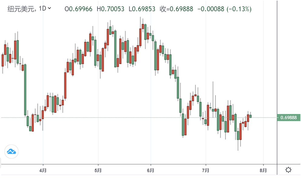 周三亚洲市场,新西兰元对守住了0.6960附近的低点。 目前,纽元兑美元不得不在联邦公开市场委员会(FOC)的关键裁决之前承受这一切。在美国下午的交易中,负面情绪将美元指数从两周低点拉回。 尽管美国6月和5月耐用品订单和住房数据均逊于预期,但对此前数据的显著向上修正,使人们重新押注美联储鹰派仍有回旋余地。与此