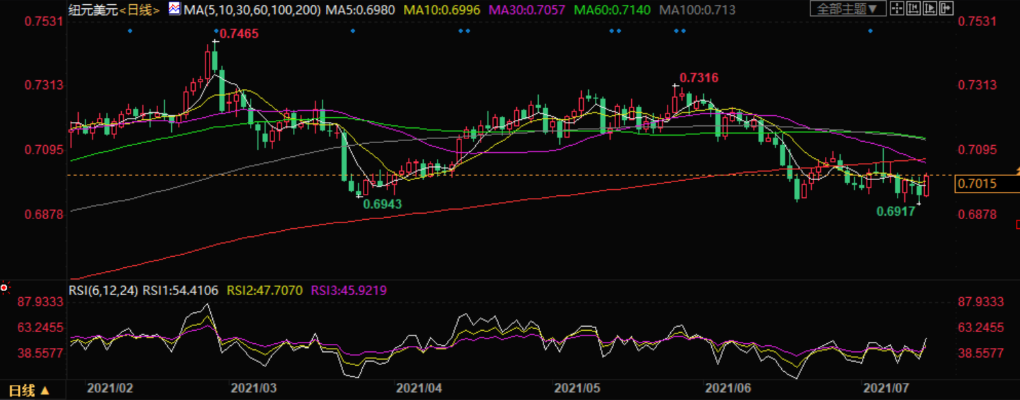 在新西兰储备银行(RBNZ)表现出强硬倾向后,纽元兑美元上涨至0.7007,周三早些时候在0.7000附近上涨了0.73%。与其他亚太国家相比,新西兰总理对新冠肺炎疫情相对较好持乐观态度。 新西兰央行在其最新的货币政策会议上维持基准利率在0.25%左右不变,符合市场的广泛预期。然而,有趣的部分是建议“在2021年7月23日之前停止
