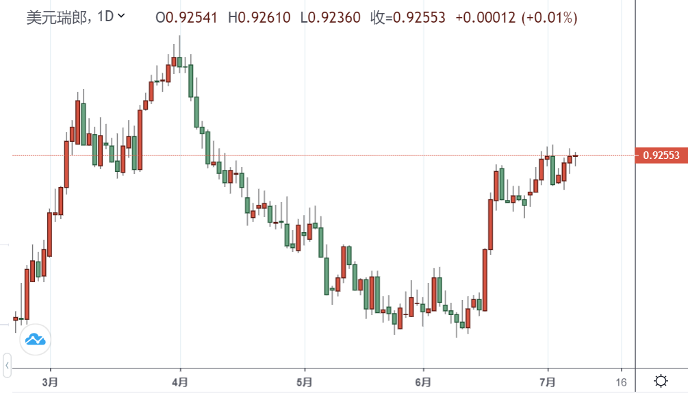 美元升值使美元兑瑞郎在亚洲市场开盘后小幅走高。该货币对在一个不到10点的窄幅交易区间内波动。 截至目前,美元兑瑞郎报0.9256,当日上涨0.01%。 美元指数为92.71,上涨0.0%3。投资者继续消化美联储鸽派和疲软的美国经济数据。 由于美联储官员仍然担心经济复苏的不确定性,美国10年期基准收益率达到1.3%,这是自2月
