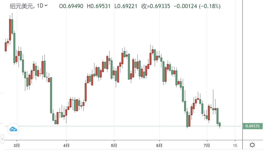 周五,纽元兑美元在亚洲市场延续了上一交易日的下行势头,并重新测试了近0.6940区域的数月低点。 在美国市场,该货币对经历了沉重的抛售压力,并从近三周的高点(本周早些时候触及的略高于0.7100的水平)进一步回落。 衡量美元相对于六大对手表现的美元指数(DXY)的反弹,将纽元兑美元拉低。由于对美国经济增长复苏的