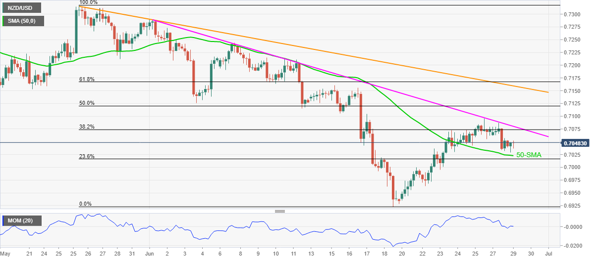 周二早些时候,纽元兑美元的买入价回升至0.7050,盘中上涨0.26%。这样一来,新西兰元对不仅巩固了前一天的损失,而且成为关键货币对中最大的收益。 新西兰政府宣布将惠灵顿的病毒预警级别从02级降至01级,这为最近的购买提供了基本的动力。 在技术面,该货币对从50-A的u型转弯和更坚挺的动量线有利于纽元/美元的买家。