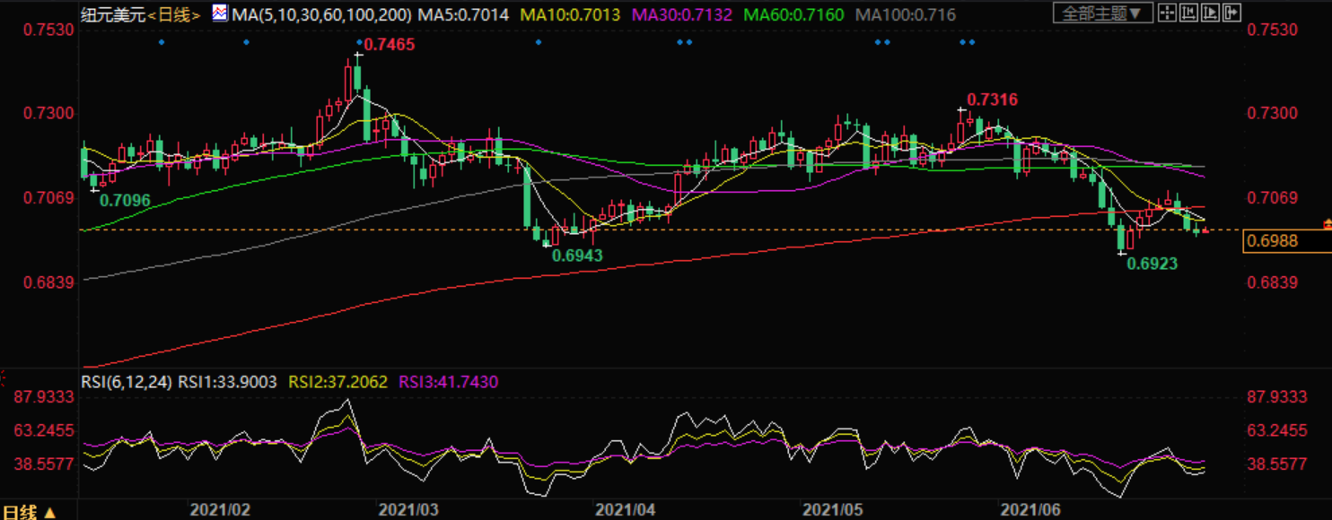 周三早盘,纽元兑美元在东京市场持平,因对某些国家新冠病毒蔓延的担忧重新出现,市场巩固了美元最新一轮的强势。 截止目前,纽元兑美元的交易价格为0.6993,并在0.6984-0.6997之间的窄幅波动区间内徘徊。 在最近对0.7150的最新熊市冲动的修正中,这只鸟的价格受到了限制,而且没有显示出多头承诺的迹象。 由于澳大利